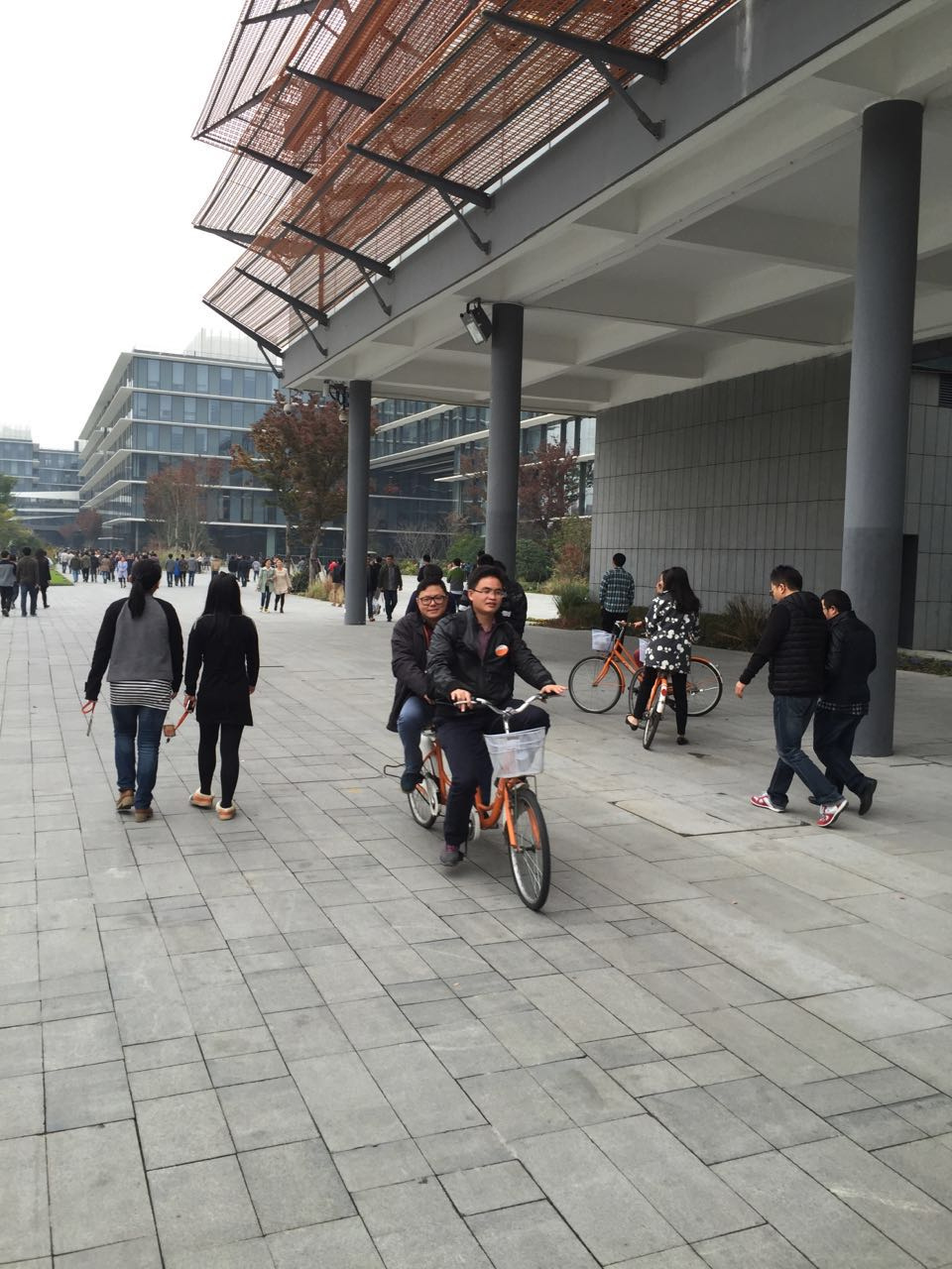 因为园区太大,所以大家都用员工卡刷专门的自行车