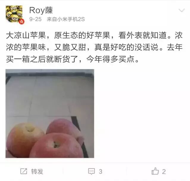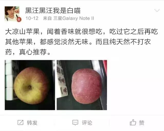 PS:苹果从遥远的大凉山上来,路途颠簸难免有些磕碰,还请猫粉们谅解哦。