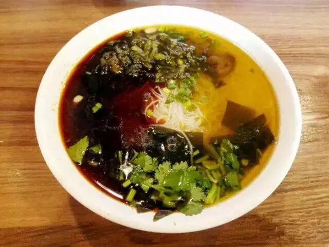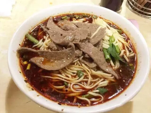 正宗的内江牛肉面,面条一定要选用细碱面,配料也只是简单的重油麻辣汤料和韭黄。