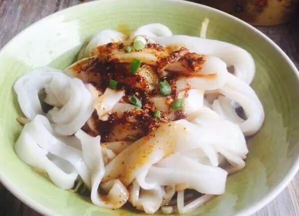 刚出锅的米凉面切宽点,拌上辣子,粘糯有弹性,很沾调料水所以吃起来味很足。凉的切细点,QQ弹弹,是另一种口感。