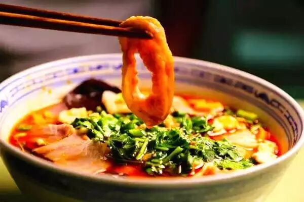 吃前浇一勺精心熬制的红艳艳的辣椒油