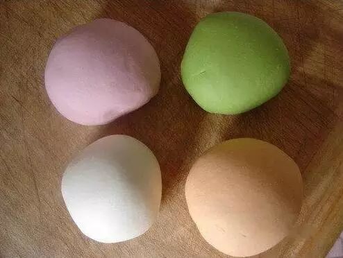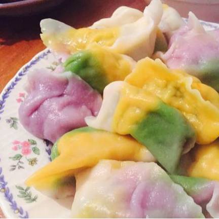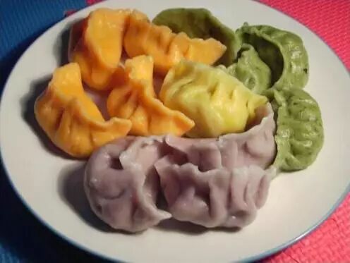 将以上这些面各自和好,就有一堆彩色的面团啦,包出来的饺子应该是这个样子的: