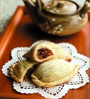 岐山酥饺色泽金黄,酥香沁甜;色彩美观,香甜各异。由莲蓉馅,猪油,面粉等食材制作而成。