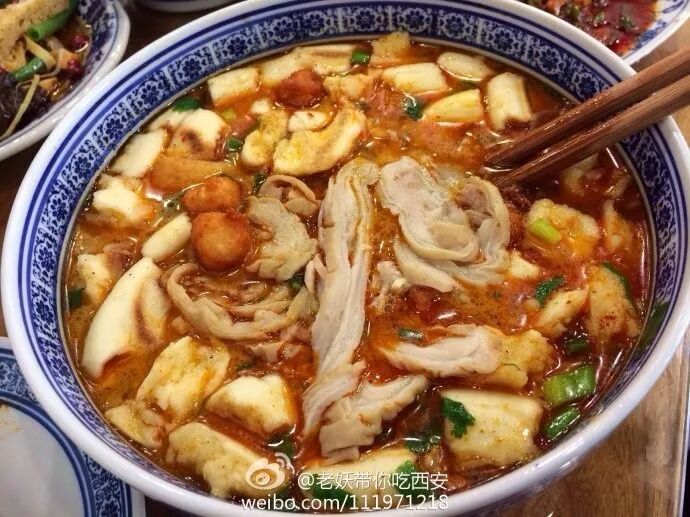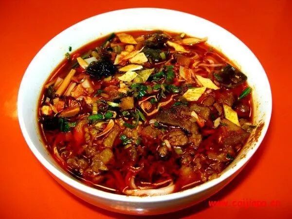 秦镇凉皮 以大米粉为原料制成,因产于户县的秦镇,也叫秦镇米皮。制作时把大米粉调节为糊状,平铺在多层竹蒸笼内,旺火蒸熟。吃时,用近一米长、20多厘米宽的大铡刀铡成细丝,加入辅料青菜、小豆芽等,调入佐料,好的口味全在辣椒油上,调好的凉皮全呈红色,辣里香。