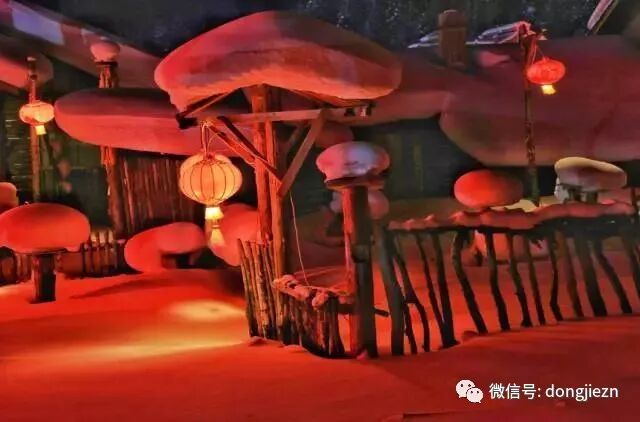 梦幻家园的的雪蘑菇是由一个个简单的木桩形成的,大大小小的各式各样,都很漂亮。雪蘑菇每个都不一样。这里无论白天夜晚都是雪乡最亮的一颗星。
