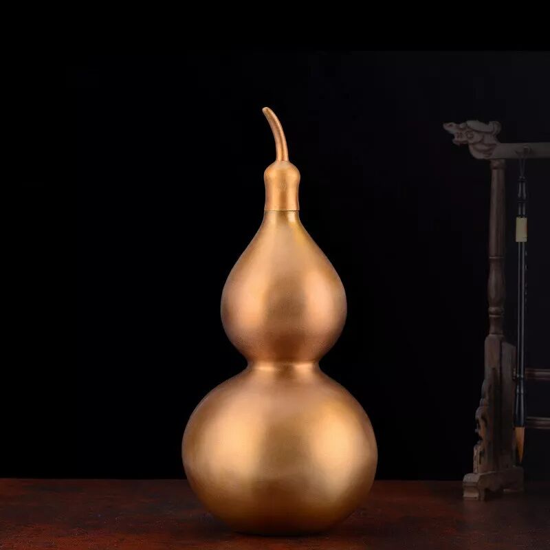 铜葫芦具有神奇的化病灾、强身健体、防病怯病、增益健康之功效。在玄空风水术中,二黑和五黄是病符星,要是飞到门上或中宫,家人会无缘无故地犯病遭灾,这时候铜葫芦就派上大用场了。二黑、五黄五行属土,用金化解,铜葫芦属金,金可以消化土,葫芦又能化病,一物二用,效果极佳,风水术语中有一句「子唤母回」的,指的就是这么回事。