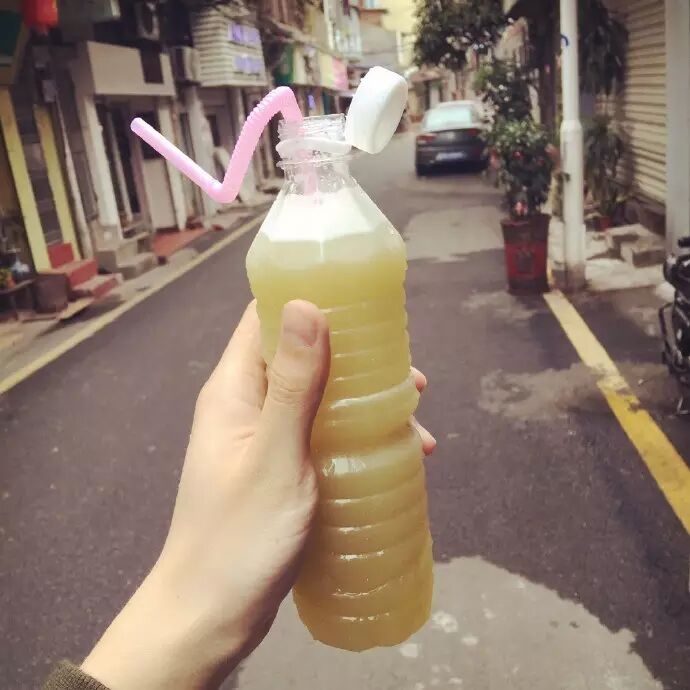 在溪岸路的拐角处有一家非常便宜的水果店,甘蔗汁鲜榨只要5元/罐!我们一定要再去一次![]()