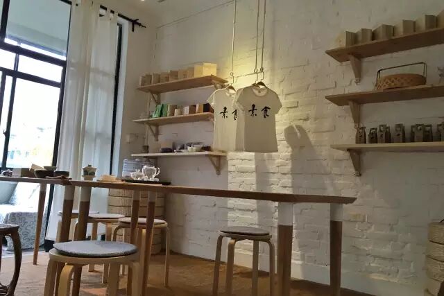 很清静雅致的一家素餐,在很小资的明堂里。地方不大,简易的刷了白墙,蒲团木椅。