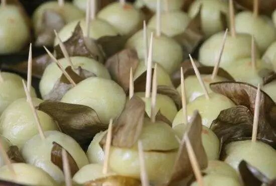 喜欢咸香口味的小伙伴不能错过,外皮是糯米做的,里面包裹着芽菜和猪肉炒制的馅儿,也有白砂糖馅儿的,包裹上艾叶,风味独特。