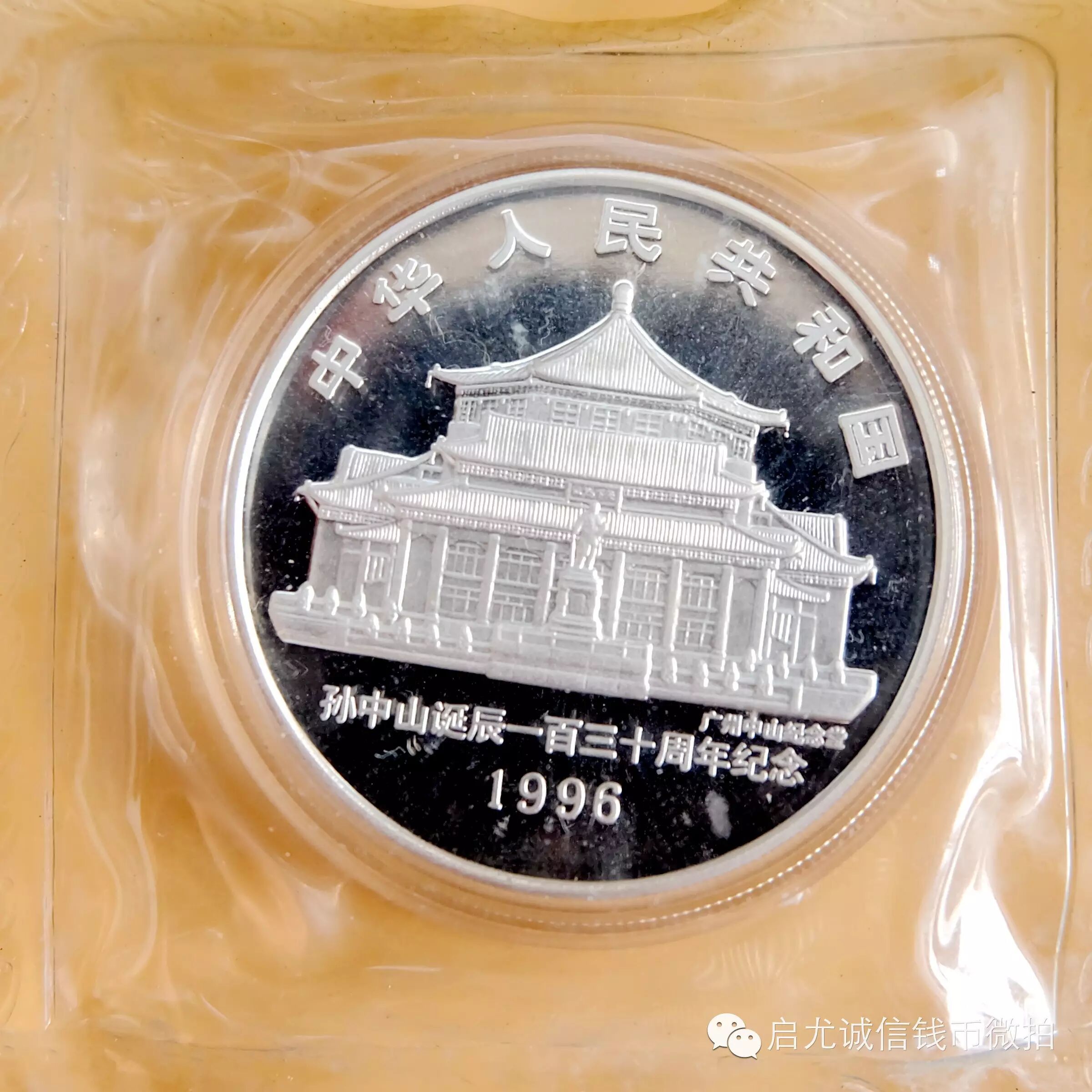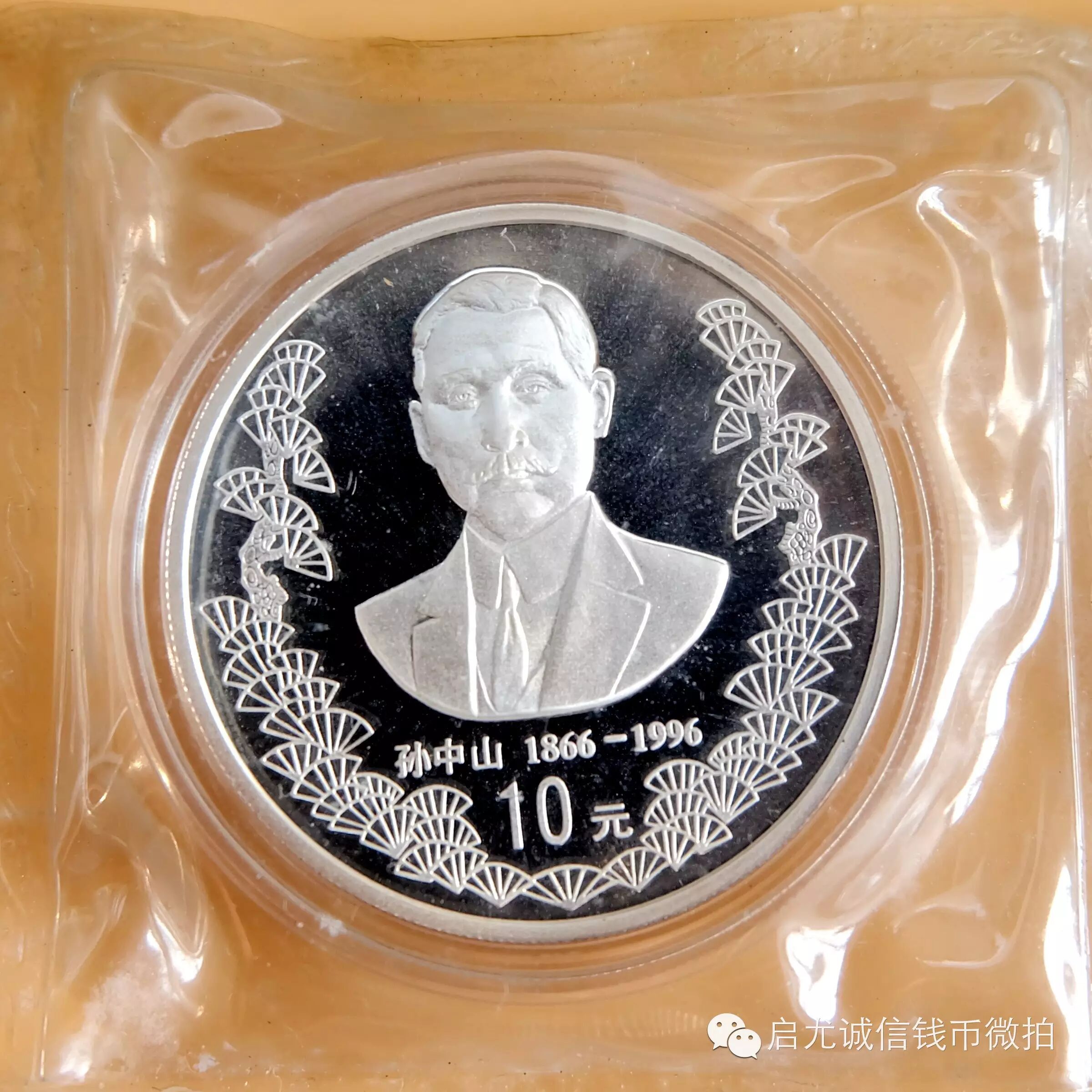 【拍品介绍】:孙中山诞辰130周年今年银币十枚一组,,直径40mm,成色99.9%银,重量1盎司,面值10元,发行数量20000枚,原塑封原证书。