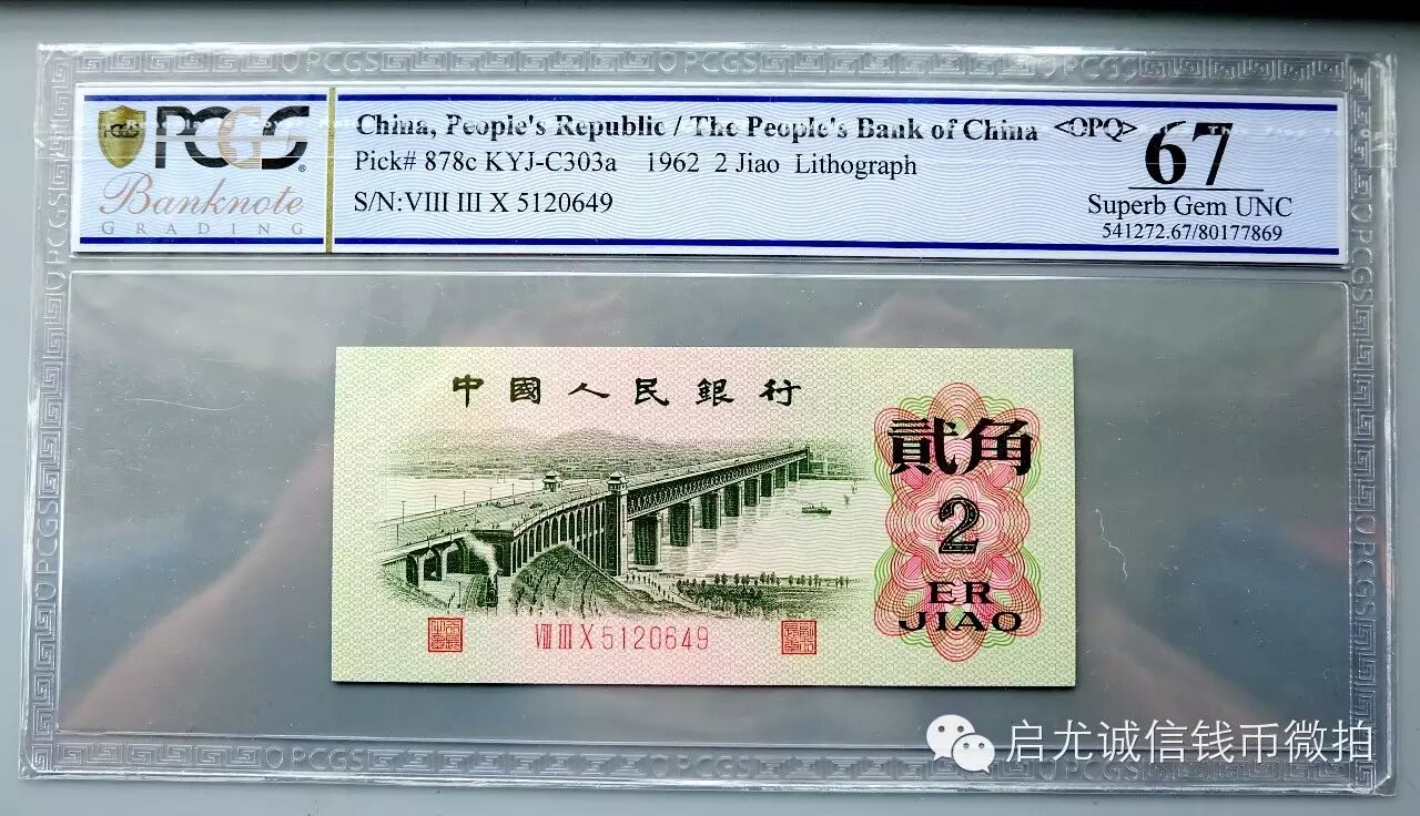 【拍品介绍】:PCGS66、67OPQ大桥贰角连号两枚,PCGS评级66、67分,两枚连号,三罗七号码,值得收藏。