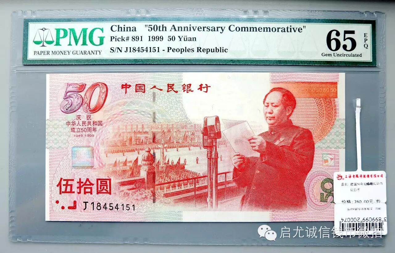 第六件拍品:【PMG65EPQ建国50周年纪念币一枚】