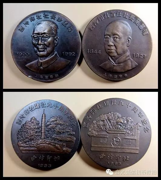 【拍品介绍】:西冷印社建社九十周年纪念铜章两套,直径:60mm 紫铜上色发行数量:8000枚,原塑封原证书。