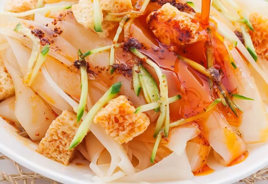 宁夏的凉皮子品种丰富,全区各地市都有自己出名的凉皮子,尤以石嘴山大武口区的凉皮子出名,微酸、香辣、软糯诱人。