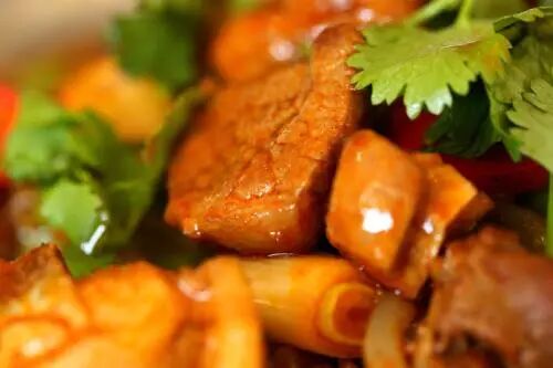 宁夏的辣爆羊羔肉最有名的莫过于平罗黄渠桥的,羊肉一般选择不超过20斤的小羊羔,烹制黄渠桥羊羔肉,主要是在“爆”的基础上,用“焖”和“烩”的手法。大火爆炒,让香味进入肉中,使菜肴鲜嫩可口,香味四溢,具有地方特色和民族风味。