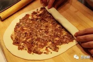 再在上面均匀的抹上一层肉馅,