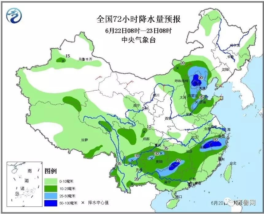 北京、天津、河北、内蒙古、辽宁、河南、山东、安徽和江苏9省(市)将出现大到暴雨