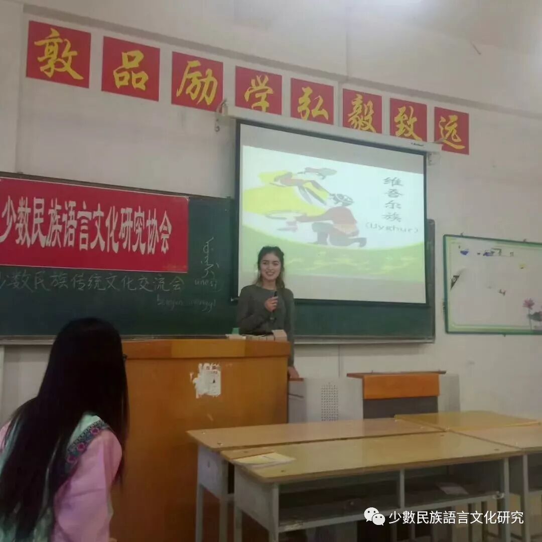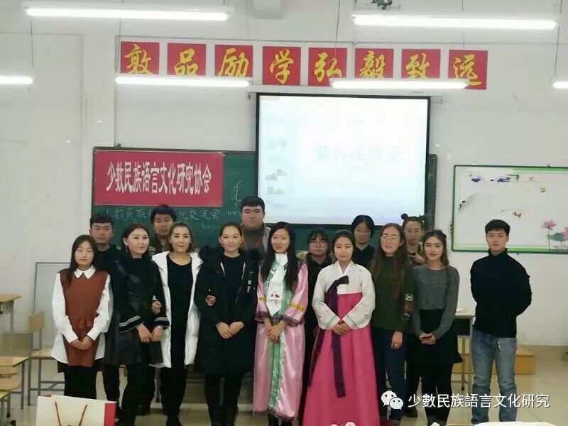 华夏大地上百花齐放,哈师大少数民族语言文化研究协会的少数民族也绽放得异彩纷呈。为了增进各族同学之间的文化交流和情感沟通,哈师大少数民族语言文化研究协会于12月06日下午一点半在人文楼408教室举行了第二届少数民族传统文化交流会。哈师大少数民族语言文化研究协会会长满明珠及各部部长以2017级新同学还有热爱少数民族文化的小伙伴们参加了此次活动。 活动开始后,会长满明珠发表了讲话,她介绍了哈师大少数民族语言文化研究协会及少数民族学生的基本概况。提出汉族和少数民族同学要互帮互助共同进步,共创和谐文明校园的希望。各民族代表先后上台发言。她们分别介绍了各自民族的起源,风俗习惯和文化特色。少数民族同学还进行了歌舞表演。引来大家的热烈掌声。各族同学通过文化交流增进了对彼此民族文化的了解和尊重。大家在欢乐的氛围中欣赏了民族文化的成就,见证了民族文化的精彩。