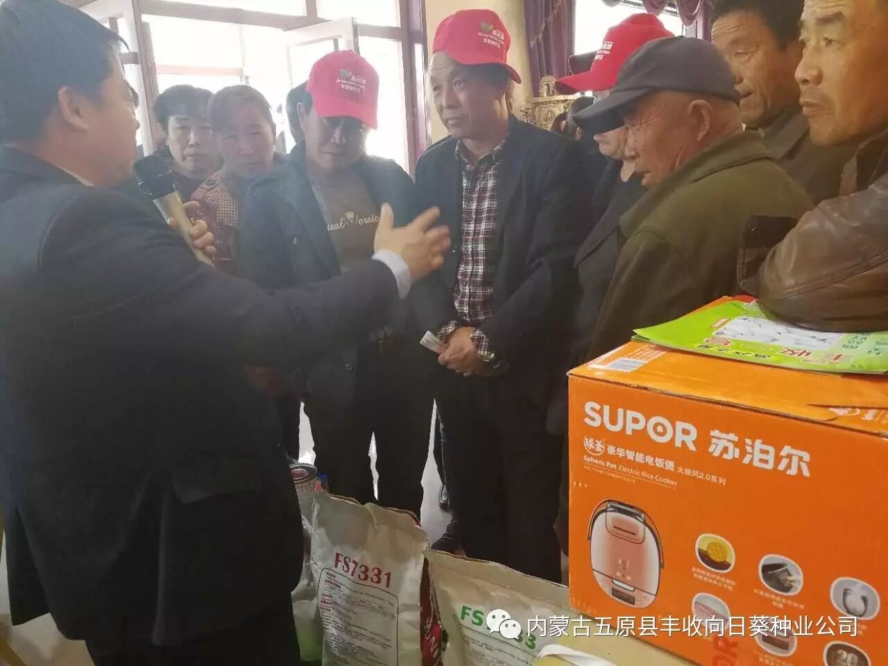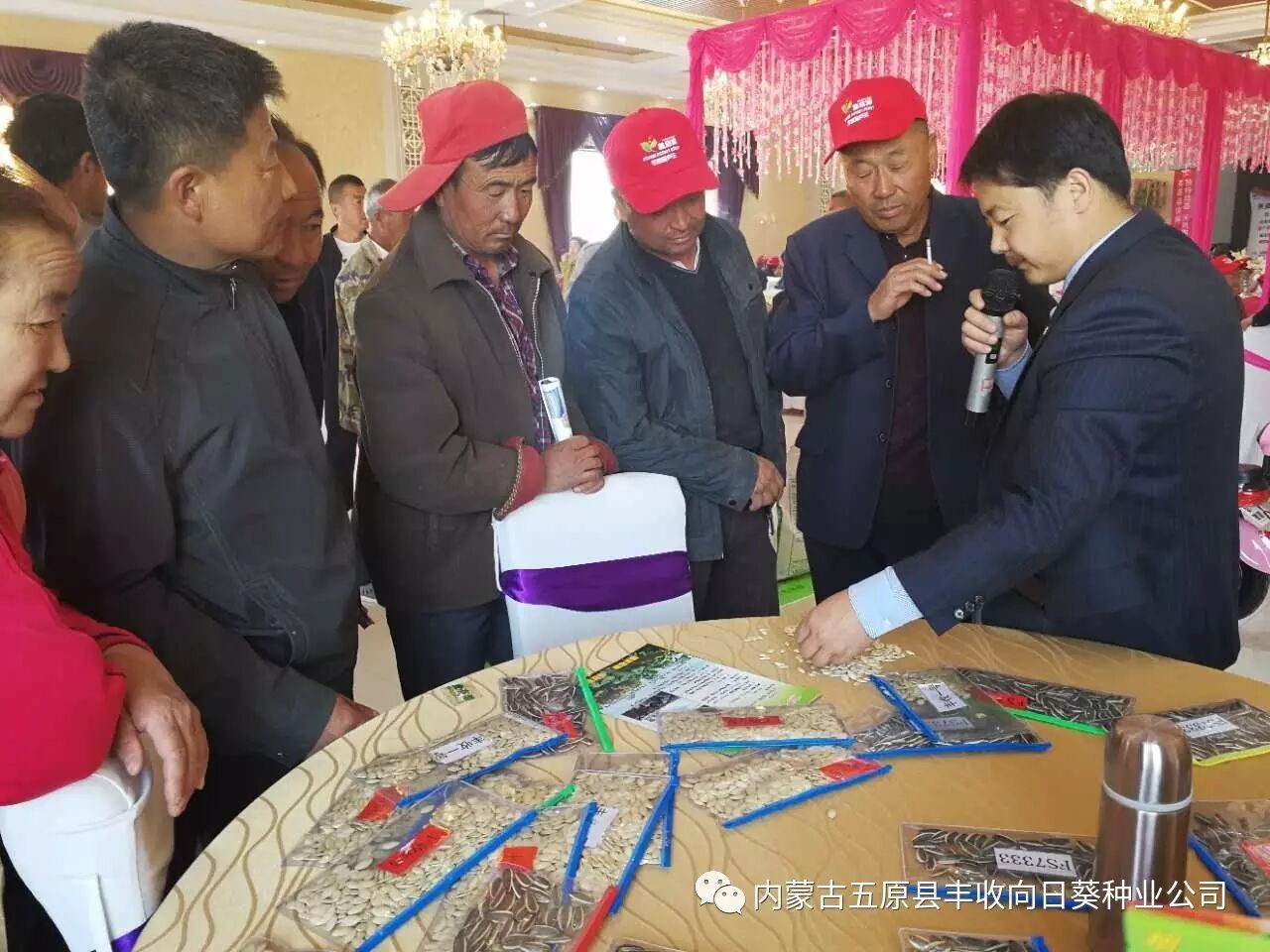 4月9日,前旗长胜付国宝种子门市与内蒙古五原县丰收向日葵种业有限责任公司共同举办了丰收系列食葵、葫芦品种有奖销售会。公司自主研发的食葵品种FS7331、FS7333、FS601,籽用西葫芦品种丰收一号、丰收八号得到当地种植户的充分认可,农户购种积极热情,现场气氛热闹非凡!
