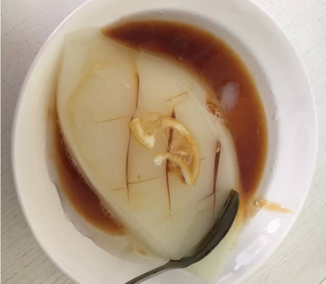 柠檬和红糖味道融合在一起,非常适合,还有柠檬果肉,混合凉糕一起吃,种类丰富,一半红糖一半柠檬,是最好吃的味道,很满足!
