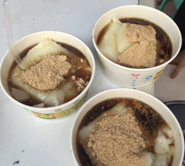 她家的凉糕是真正用大米自家做出来的,吃到嘴里绵糯香爽,而且她家凉糕配的汁也别致:红糖水里加黄豆粉、花生和芝麻。