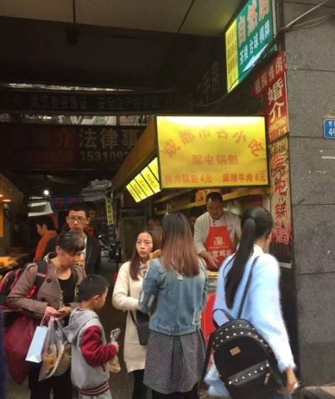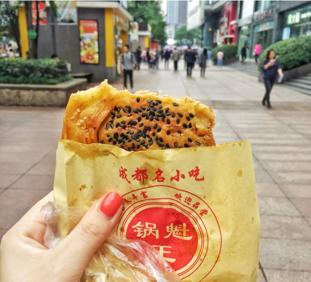 观音桥大名鼎鼎的成都名小吃军屯锅盔,门口永远排队,因为每一炉大概7个,从揉面、抹料、压型、油煎、上炕、出炉,一炉大概10分钟,所以不等就是运气好。
