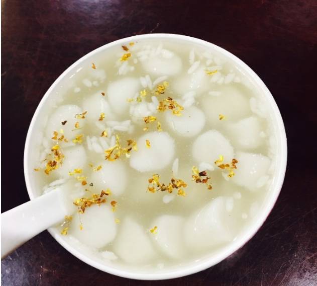 桂花小汤圆,上面撒的桂花真的很有画龙点睛的作用,整个味道得到了很好的提升。
