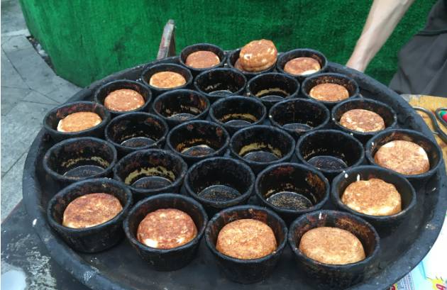 一勺米糊,填满各个小铁盒,再一根签签儿一戳一翻,再等一哈儿豆好了,糕如其名,很平整,甜津津的。
