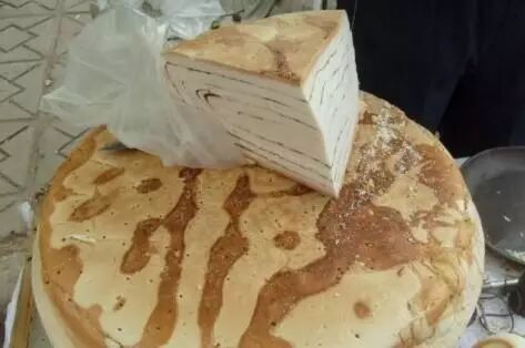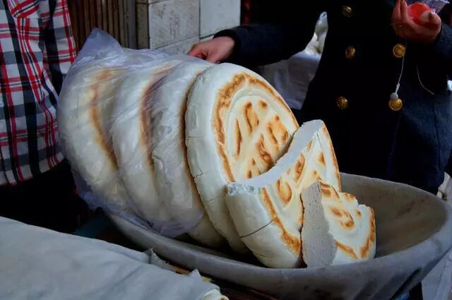 甘肃陇南西和县的西和锅盔形似银盘,直径尺余,厚四寸见方,重约5斤左右。独特的烙制工具使面饼上下两面均匀受热,饼瓤酥软,面皮乳黄,食之喷香可口,美观大方,是一道热门的风味美食。
