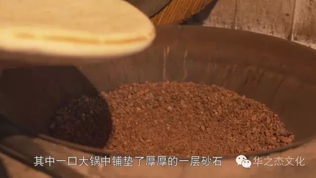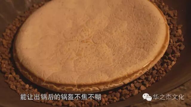 为了保证锅盔受热均匀,其中一口大锅中铺垫了厚厚的一层砂石,这样的细致和繁琐,能让出锅后的锅盔不焦不糊,同时具有生面的颜色,熟馍的味道。