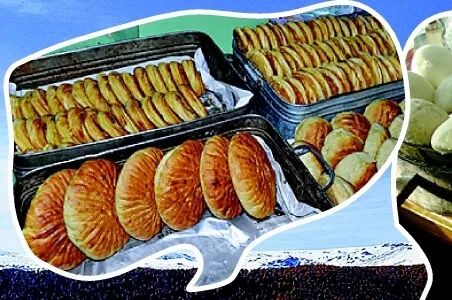 巴里坤人把各种饼子、点心统称为“馍馍”。有大如车轱辘的,里面铺着一层一层的各色作料;还有小巧一口就能吞下的;厚的足有三四寸高,人称“枕头馍”……