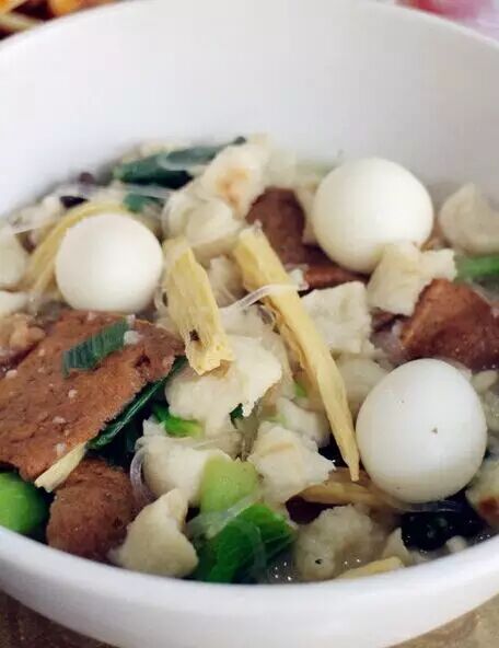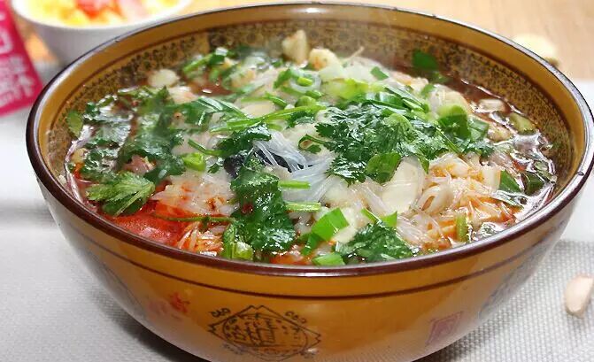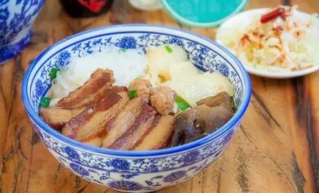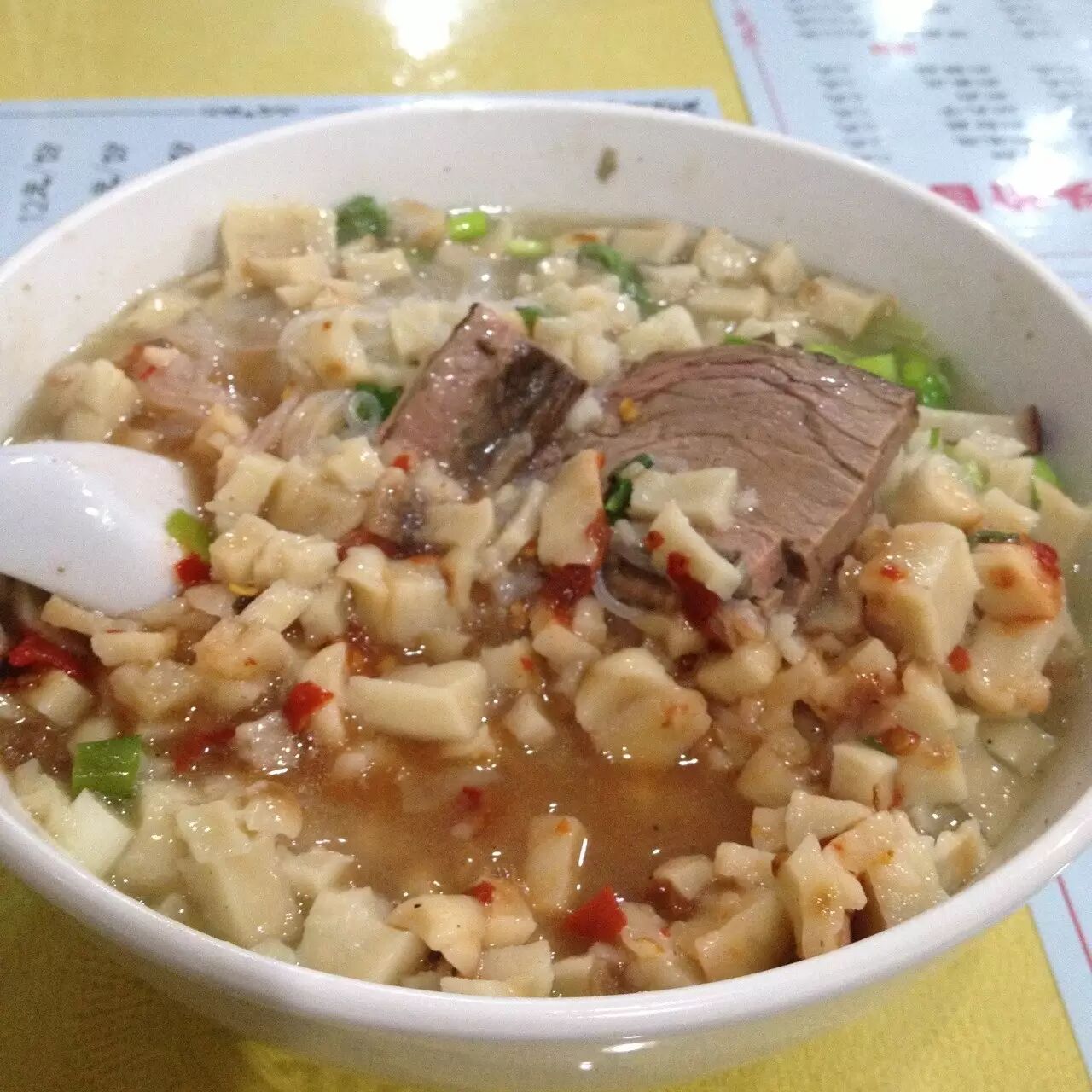 原料是莲菜、青笋、木耳与炒瘦精肉等,亦用三鲜煮馍的高汤煮成。这种“炒肉片煮馍”是传统“三鲜煮馍”的有机延续,假若能有机会能够品尝一下正宗的口味,我想一定会留给你至深的印象……
