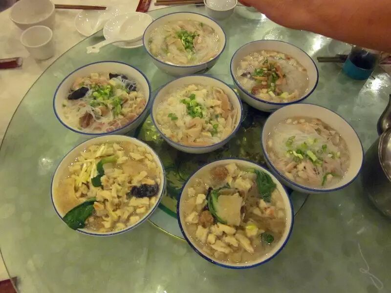 碗中三鲜颜色鲜亮,高汤色白,香气四溢,所谓丸子黄、肉片红、面皮奶色,再加上一点辣子,更是五颜六色,分外好看,真能引起人的食欲呀!