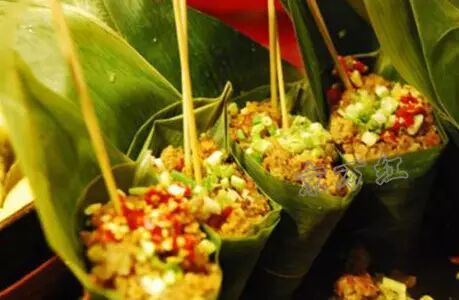 锦里的竹叶粉蒸肉不仅味道好,卖相也颇为精致,翠绿的竹叶配上红嫩的肉末,加以小米椒和葱花相配,不仅仅美味,更是视觉上的享受。