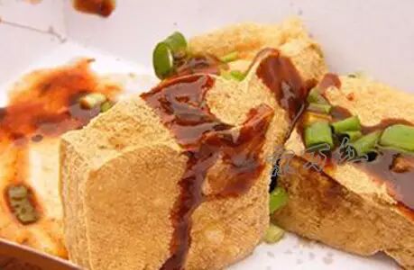 唐字的臭豆腐就是属于灰白的嫩豆腐。嫩臭豆腐下到油锅里炸至金黄色,就可以起锅,吃的时候浇上一些辣椒酱、芝麻酱、蒜汁、香菜、小葱、姜末,吃起来外脆内酥软,味道香浓。