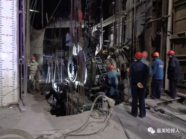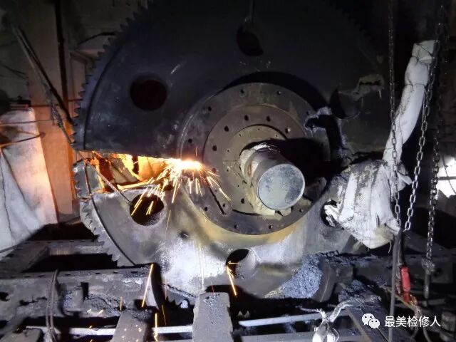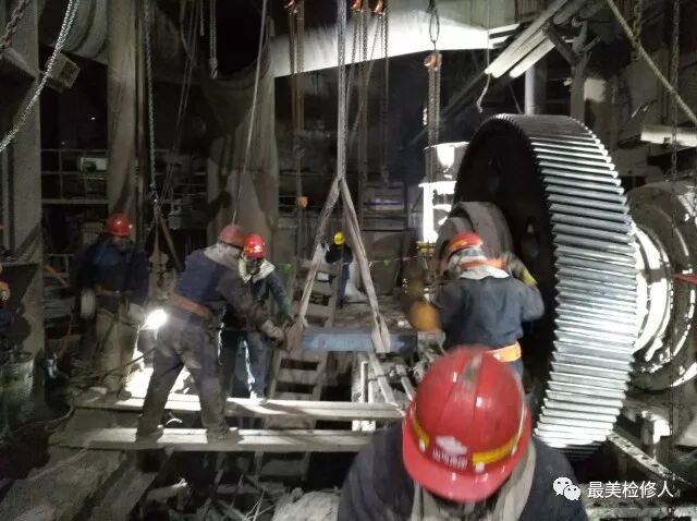 经过9个多小时的奋战,减速机底壳终于乖乖的“让位”,保证了减速机大齿轮顺利“搬家”。