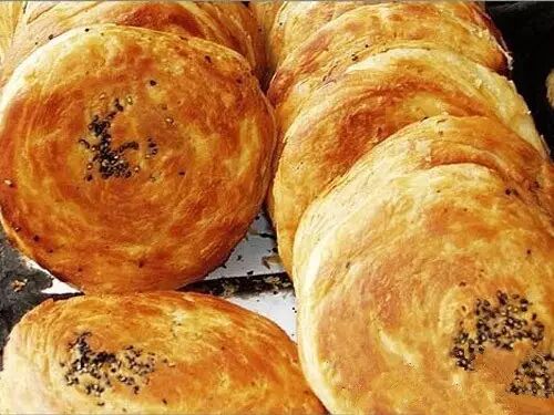 韩城风味芝麻烧饼,美味可口,闻名关中。饼呈圆形,主要用料是白面、食油、芝麻、调料。做法精细,先将和好的白面拉成扁状长条,再垫入食油和调料,然后卷好压圆,在圆心压上芝麻,成形后放入特置的铁鏊上油烙,然后置于鏊下的焦炭火旁烘烤即成。芝麻烧饼层层多,色泽黄,酥脆可口,人们尤喜伴食热凉郱。