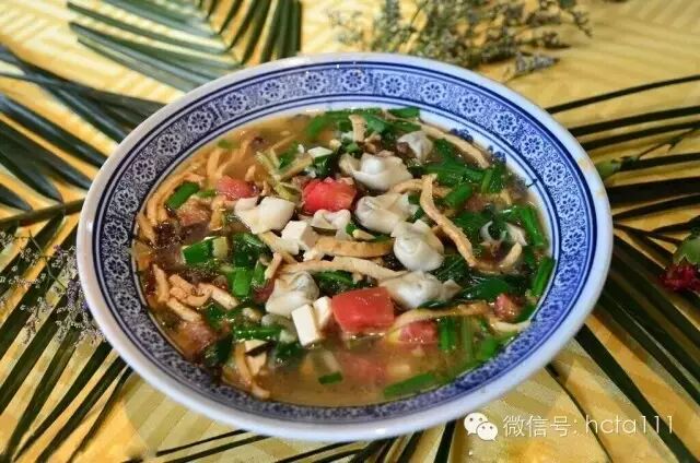 乔麦面制成细条煮熟,用鲜羊肉、熟羊油配多种调料、佐料制成躁子菜浇之。面条细长,绵软爽利,臊子酥烂,汤味辣香。