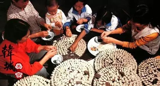 “馄饨”,含有“团圆美满”之意。是韩城人过年过节、男婚女嫁、老人祝寿、孩子满月等场合招待亲朋厚友和贵宾的待客饭,韩城的馄饨与众不同,非常之小,只有成人指甲盖那么大。