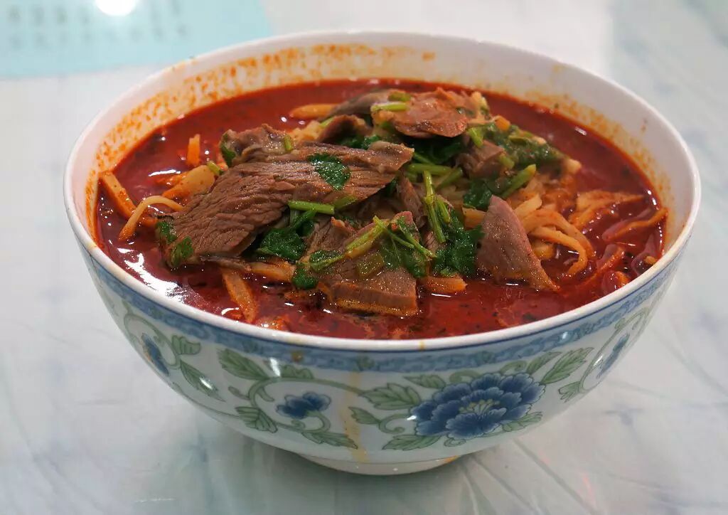 羊肉胡饽是韩城一道具有地方风味的特色小吃,取适量小麦面,面和的不软不硬,手擀成圆形的面片后,放到油光的铁烙饼锅上,缓缓的火候,烙到六七分熟的时候取下来,然后,像切面条一样,切成韭叶那么宽,搭上油锅,倒上菜油,放上熟羊肉片,肥瘦皆宜,接着放上上好的辣椒粉切好的葱花,蒜片,香菜,等到锅里水煮,就可以放入切好的胡饽,几分钟一锅红油红油的泛着浓郁肉香而不惺的羊肉胡饽就这么做成了!