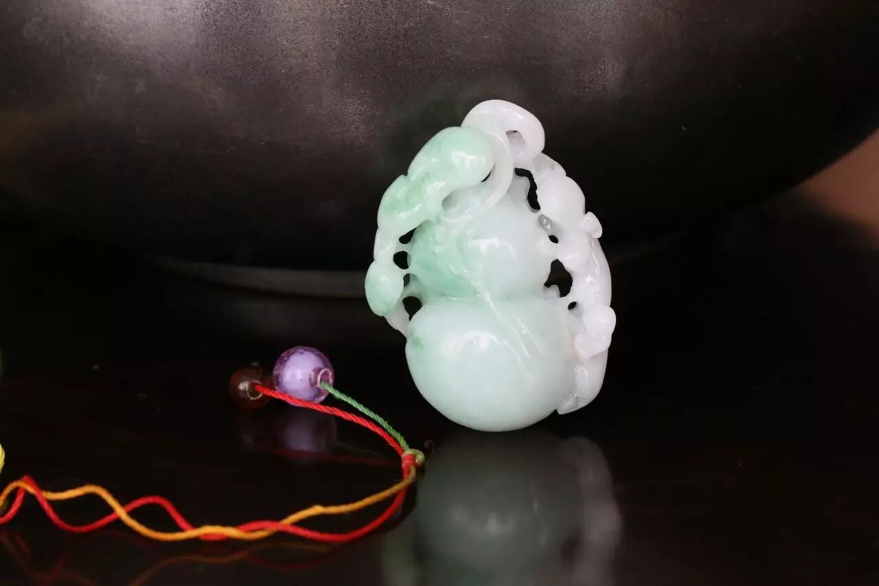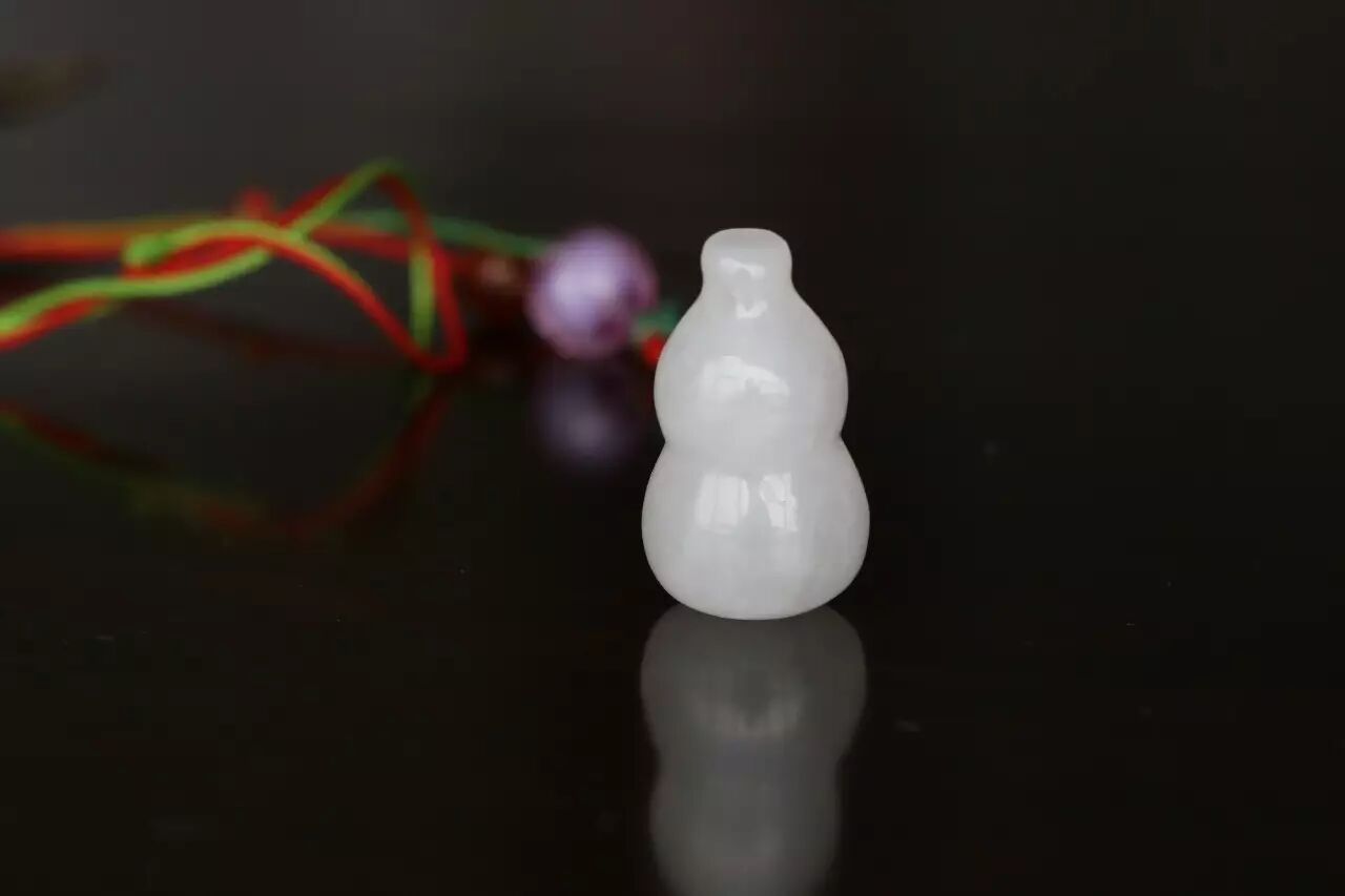 葫芦由上下两个球形组成,圆润饱满,弧度规则圆滑。传说将葫芦挂在夫妻睡的床上,可以促进夫妻和睦,婚姻幸福圆满。翡翠葫芦也有这样的寓意,翡翠葫芦寓意夫妻和睦,幸福长久。