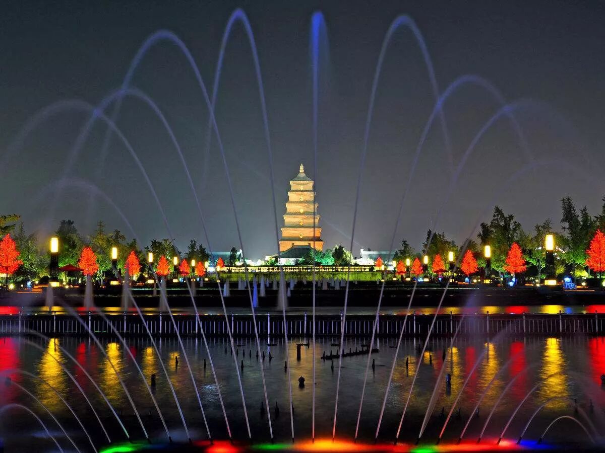 晚上8:30开始的大雁塔喷泉,还没等开始就已经有很多人坐在喷泉边等候了。其实这就是那种来了第一次不会再来第二次的景点,只是觉得毕竟号称是亚洲第一大音乐喷泉嘛,来了总要看一下。也不是说不好就是没有很高的预期,也没有达到预期以上。