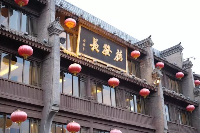 "德发长"气派的金字牌匾。饺子宴设在二楼,一楼是一般的堂食。恰巧赶在饭点儿,生意很好,还有不少外国友人慕名而来。
