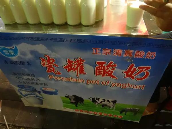 这个酸奶非常好喝!喜欢喝酸奶的不要错过!在瓷罐里面装着,你喝的话她会倒在一次性的塑料杯子里面给你。我第一次买的那杯5块钱,走了一会又想喝,问了另外一家的说6块一杯。我说刚才喝的5块呢,然后老板就说好了5块给你了~你懂得啦,估计大家也习惯了。