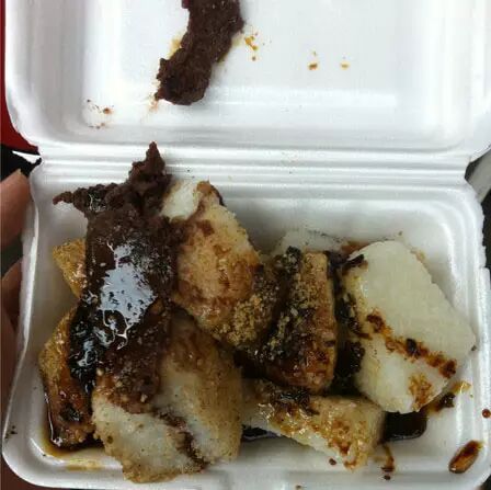 在拐角的地方有个老婆婆买的凉糕,老婆婆很有意思,会三门语言,凉糕很劲道,有两种味道的,一种使加豆沙的,一种使什么都不加的,我比较喜欢加豆沙的。