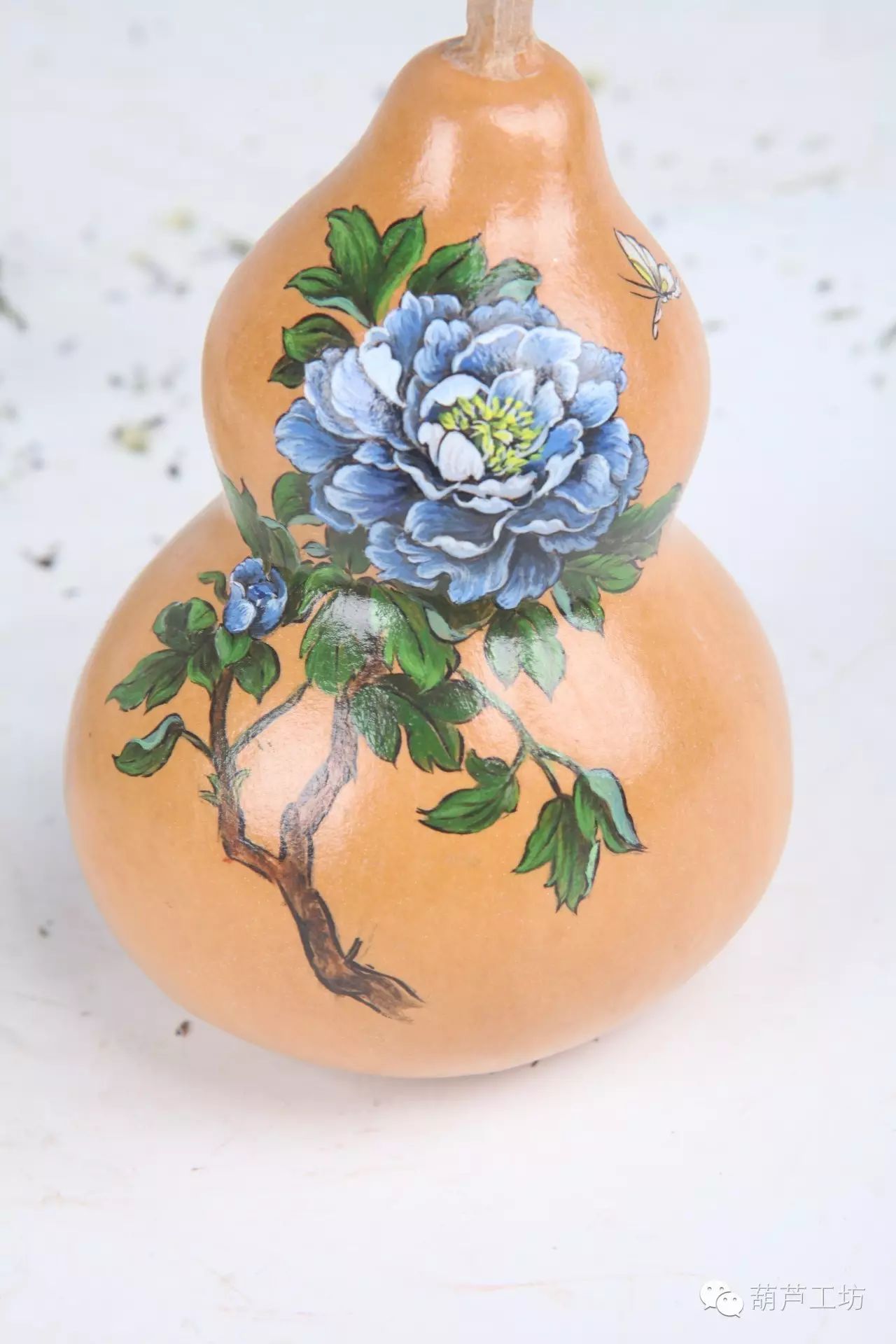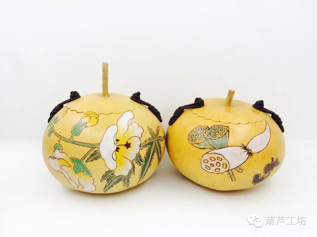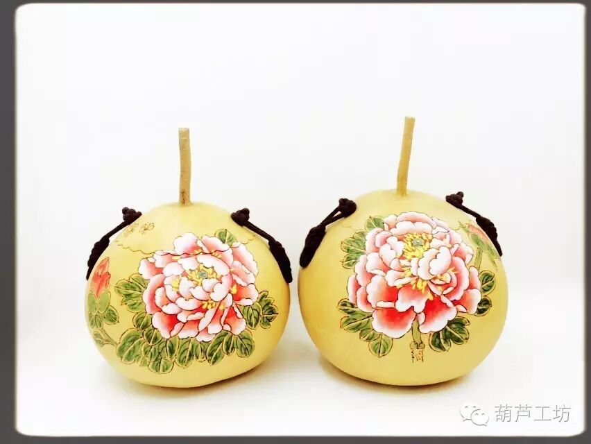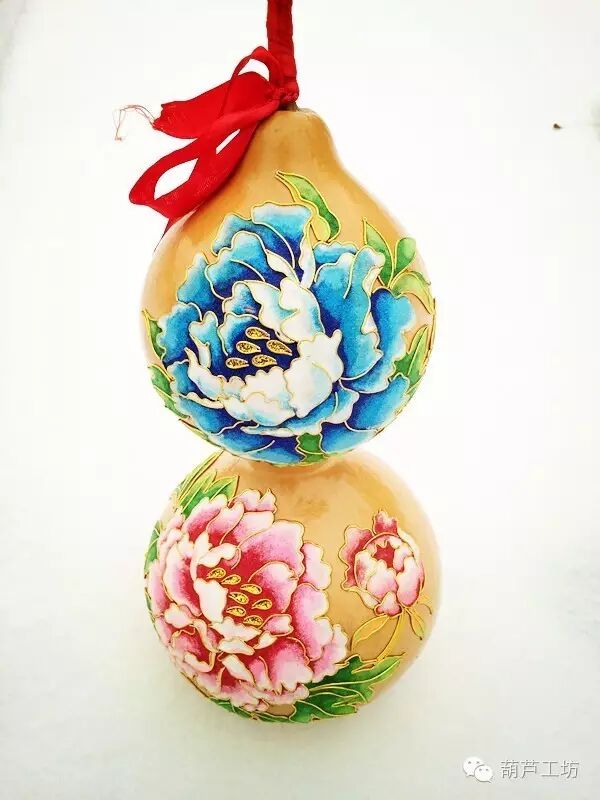 工笔画葫芦:主要采用中国传统工笔画技艺和题材进行构思创作。图案主要有牡丹、花鸟、山水等素材,运用传统书画技巧,结合油画、国画等元素,创作出工笔画葫芦精品。