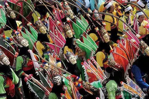 在国外庆祝新年,都会举办假面化妆舞会。而在600多年前的屯堡人,在春节期间,一样举办假面舞会——跳神(地戏)。屯堡人主要信奉坛神,春节的祭祀活动,以跳神(地戏)为主的。