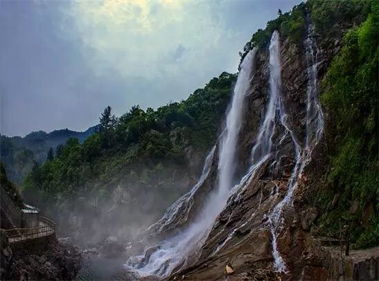 明堂山位于皖西南大别山腹地安徽省岳西县境内,距县城42公里,明堂山属大别山体系,它自多枝尖山脉蜿蜒而来突起三峰形成,主峰海拔1563米,是长江、淮河两大流域的分水岭,是古代吴楚相连之地。相传,2100多年前,汉武帝刘彻封禅古南岳——天柱山时,设祭拜之“明堂”于此山而得名;民间因其隽秀婀娜的山形与天柱山的雄伟挺拔相呼应,且同属皖地、仅隔百里,有“两山竟长,相约为偶”之说,故又戏称天柱山为“公皖山”,明堂山为“母皖山”;又由于明堂山主峰石壁上有一天然雄鸡图案,且由北望之群峰形若鸡冠,故又名“鸡公山”。![]()