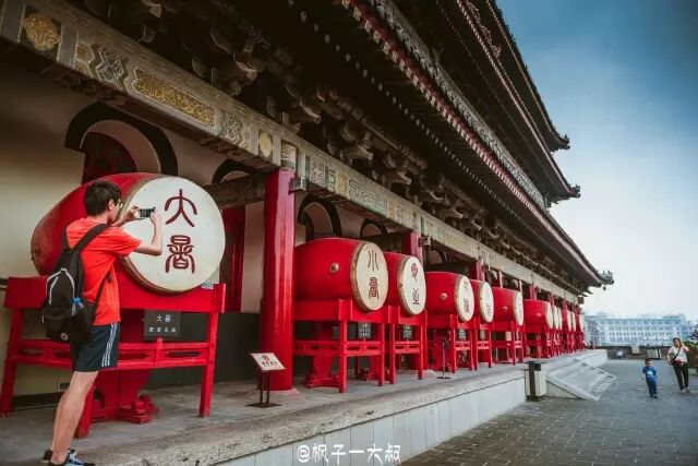 历经岁月沧桑,如今巨鼓早已不存在,惟余鼓楼巍然耸立,钟楼上每天都有编钟表演,夜景非常的壮观,仿若梦回唐朝。