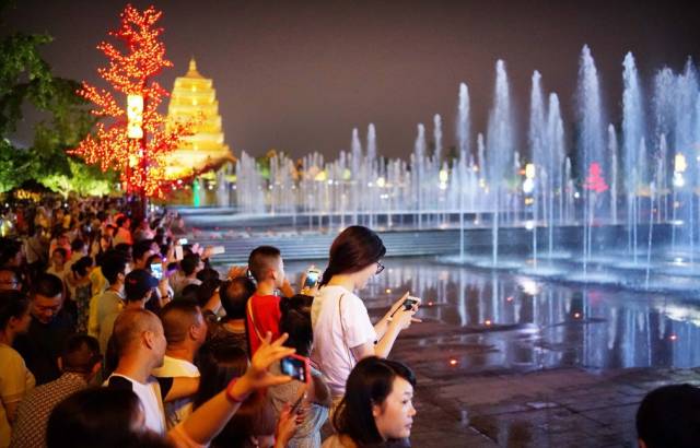 大雁塔北广场市区内最著名的广场,每天晚上都有亚洲最大的音乐喷泉表演,场面非常壮观。